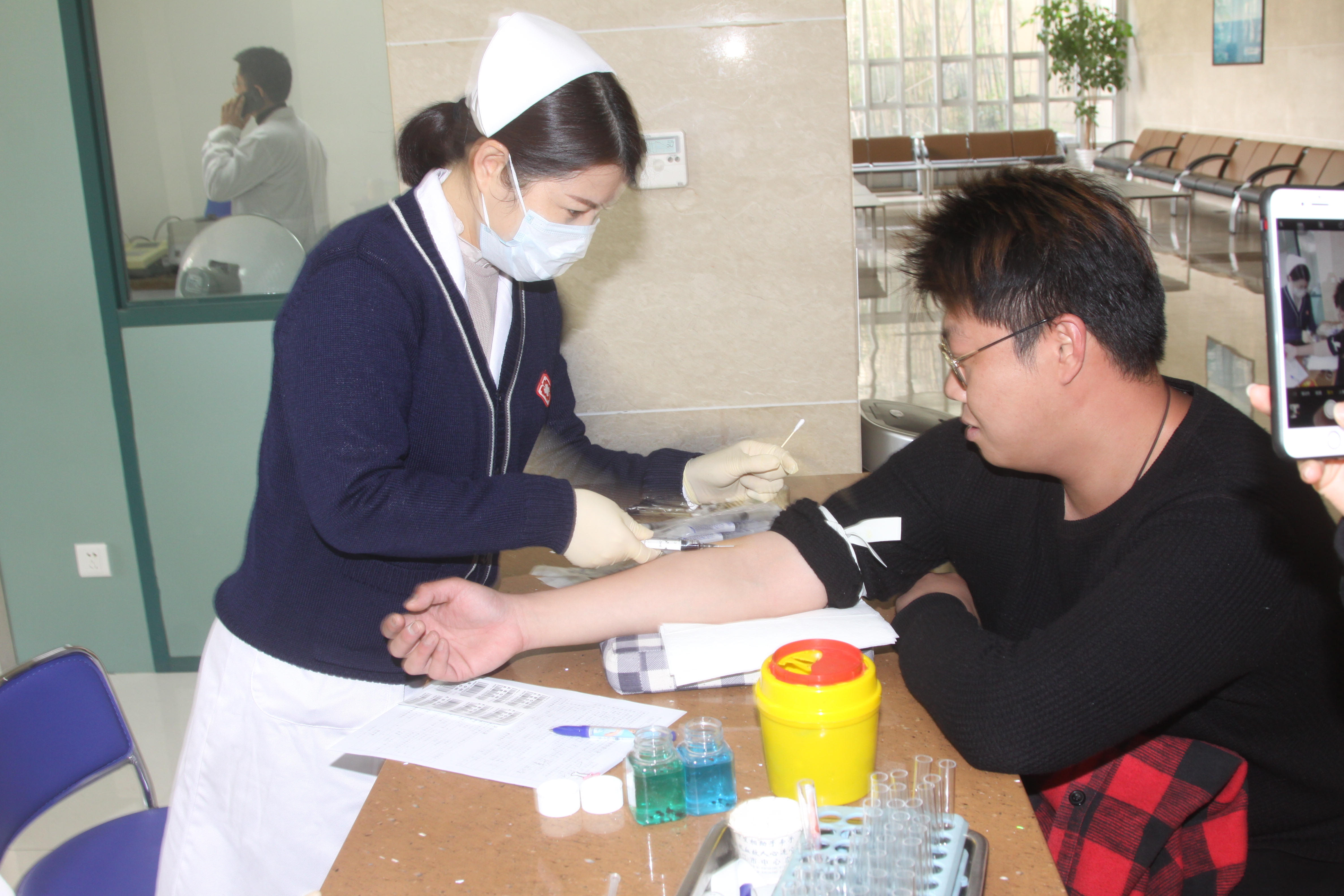 在血液中心工作人員的指導下,捷誠職工排著長隊測量血壓、抽血化驗,有條不紊的進行著血液檢驗。