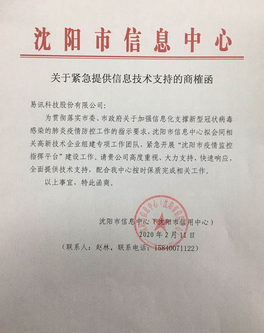 疫情就是命令,防控就是責(zé)任。目前,疫情防控工作已到了最關(guān)鍵的攻堅(jiān)階段,航天通信所屬易訊科技,主動(dòng)擔(dān)當(dāng),自覺履行社會(huì)責(zé)任,助力沈陽市政府開展新型冠狀病毒引發(fā)肺炎疫情防控工作。