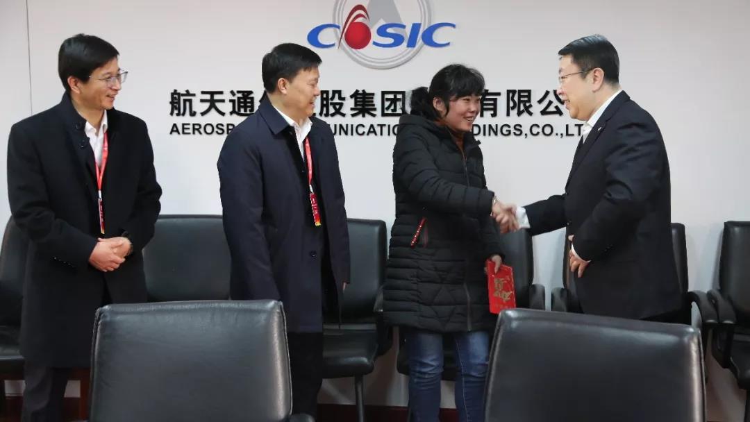 1月24日,集團(tuán)公司黨組成員、副總經(jīng)理陳國瑛走訪慰問航天通信困難職工,為困難職工送去了組織的關(guān)懷、新年的祝福和慰問金。航天通信黨委書記、董事長余德海,總裁、黨委副書記崔維兵陪同。