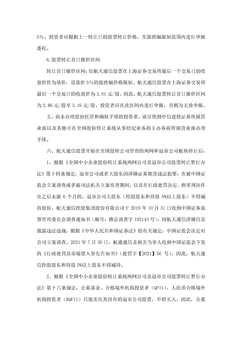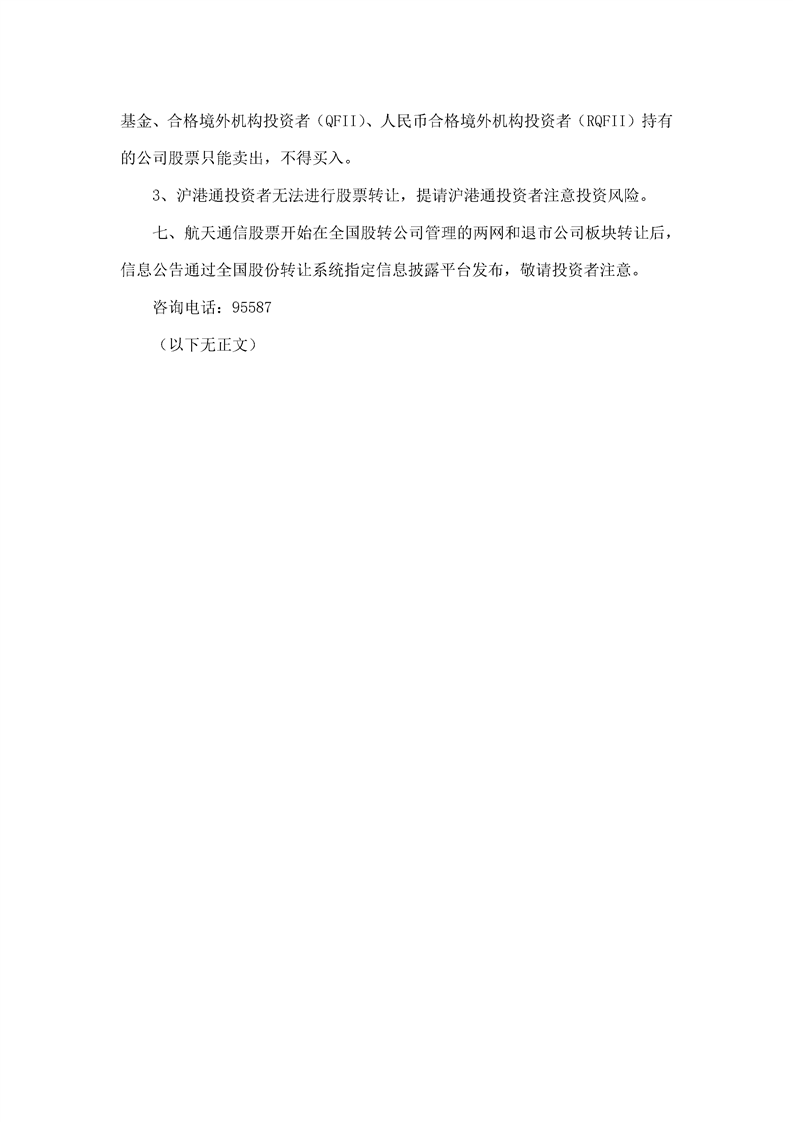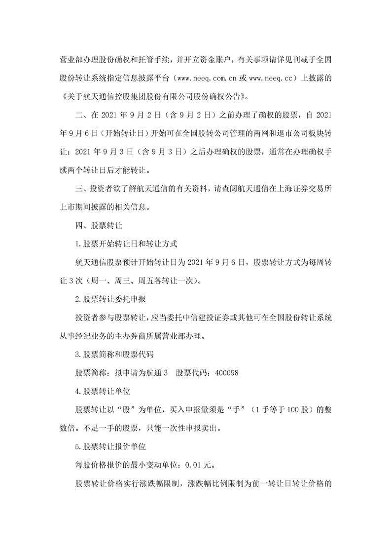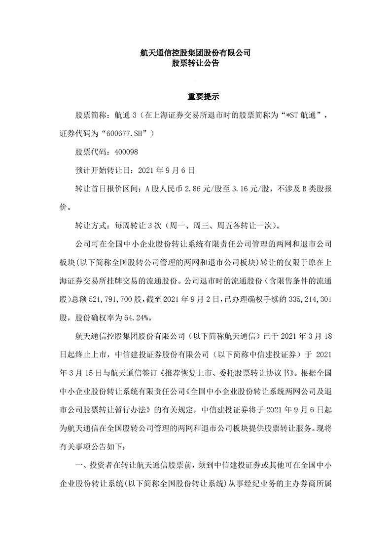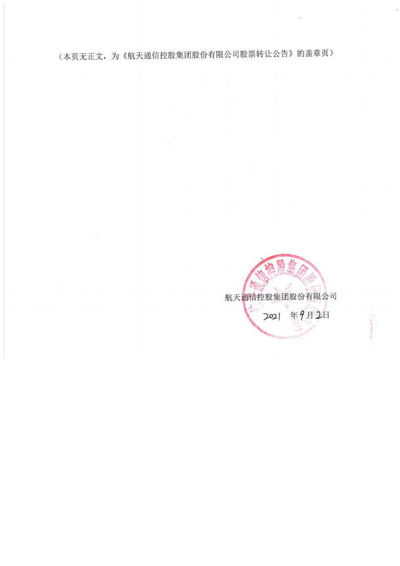 航天通信控股集團(tuán)股份有限公司股票轉(zhuǎn)讓公告